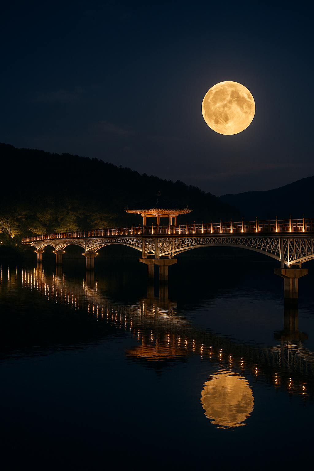 낙동강 위에 놓인 국내 최장 목책 다리인 월영교는 추석 보름달을 감상하기 좋은 명소입니다. 다리 위에서 바라보는 달빛과 강물의 반사는 낭만적인 추억을 남깁니다.