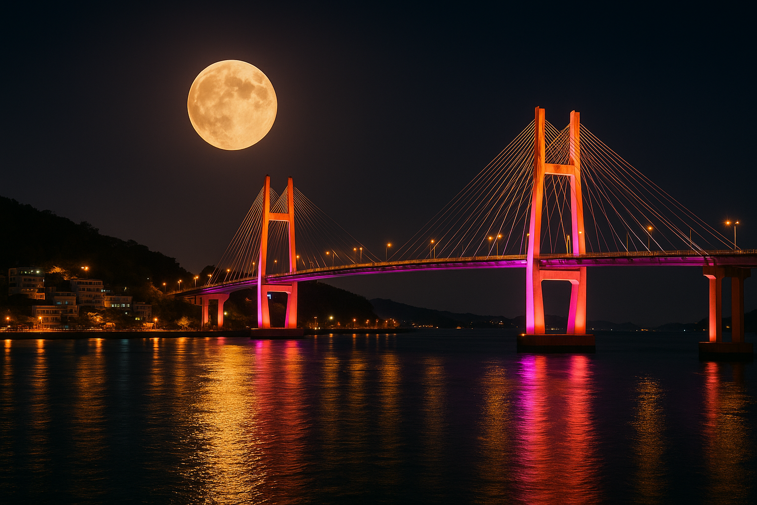 여수의 대표 랜드마크인 돌산대교는 추석 보름달이 뜨는 밤, 다리 불빛과 달빛이 어우러져 환상적인 장면을 연출합니다. "여수 밤바다" 노래 가사로도 유명해진 야경은 연휴 여행의 백미입니다.